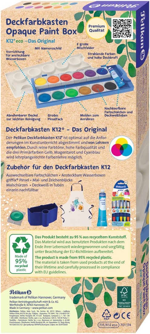 Artikelomschrijving Pelikan verfdoos 735/K12 Eco, 12 napjes