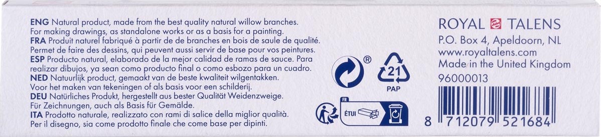 Specificaties Talens houtskool medium, doosje van 3 staafjes