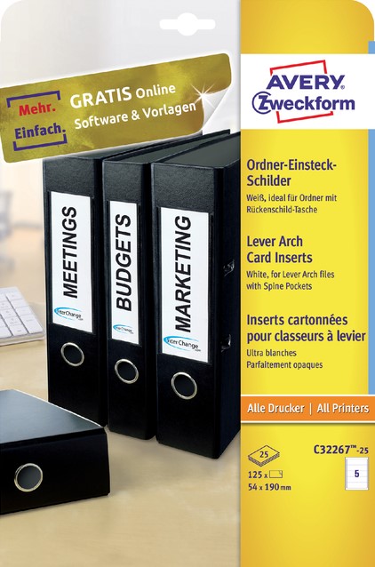Stel een vraag over Rug-insteekkaart Avery Zweckform breed 54x190mm wit 25 vel