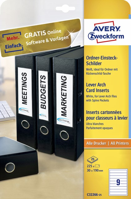 Stel een vraag over Rug-insteekkaart Avery Zweckform smal 30x190mm wit 25 vel