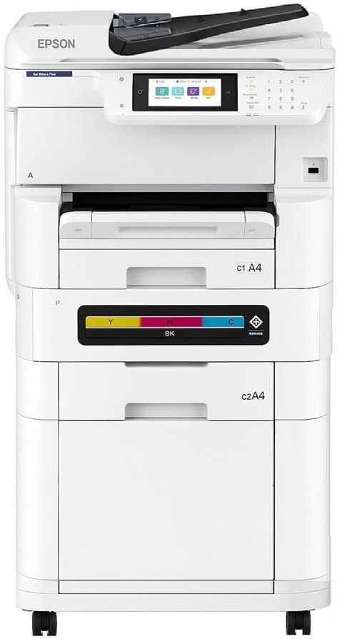 De Epson WorkForce Pro EM-C8100RDWF is een professionele 4-in-1 A3-printer (printen, kopiëren, scannen en faxen) met Heat-Free inkjettechnologie en het Replaceable Ink Pack System (RIPS). Hierdoor print je energiezuinig, duurzaam en met een zeer lage total cost of ownership. De printer is direct klaar om te printen, zonder opwarmtijd, wat ideaal is in drukke kantooromgevingen.