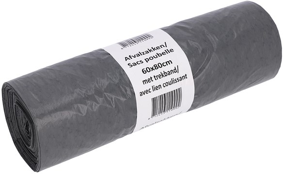 Afvalzak Cleaninq 60x80cm LDPE recycled T30 60L met trekband grijs