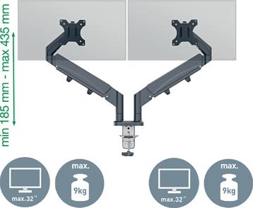 Specificaties monitor arm 2 schermen ruimtebesparend Leitz Ergo grijs