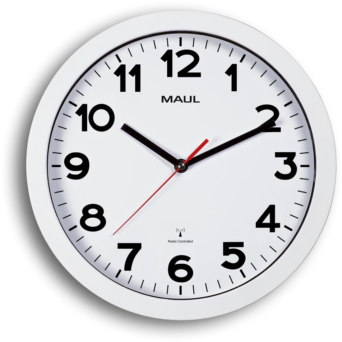 Artikelomschrijving MAULstep wandklok, radiogestuurd, diameter 30 x 5 cm, kunststof kader, wit