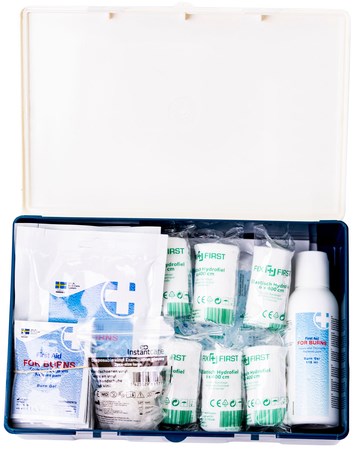 Complete brandwondenverbandset voor het verlenen van eerste hulp, bestaande uit: