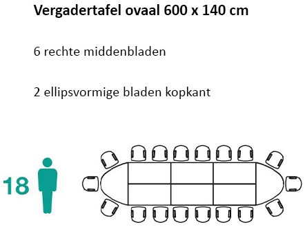 Specificaties vergadertafel ovaal 18 personen