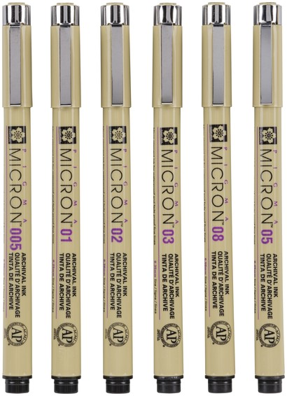 Fineliner Sakura Pigma Micron Black Edition set à 6 breedtes + gratis etui