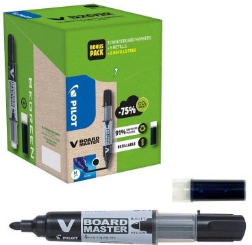 Artikelomschrijving Pilot V-Board Master BeGreen whiteboardmarker, ronde punt, 2,3 mm, 10 stuks + 10 vullingen, zwart