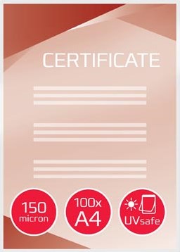 Kwalitatief hoogwaardige lamineerhoezen . Deze lamineerhoezen zijn UV bestendig door UV-remmers die de kleuren beschermen en de levensduur van ingelamineerde documenten verlengen.