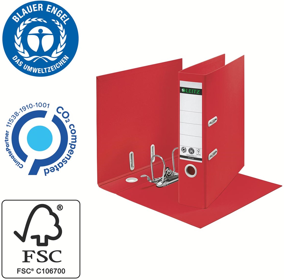 Artikelomschrijving Leitz Recycle 180° ordner, rug van 8 cm, rood