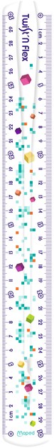 De Maped Twist & Flex liniaal van 30cm is perfect voor school en thuis. Deze liniaal is gemaakt van flexibel plastic dat goed bestand is tegen schokken. Hierdoor kun je eenvoudig en nauwkeurig lijnen trekken. De liniaal heeft een millimeter verdeling en een dubbele schaalverdeling, wat het tekenen van lijnen nog makkelijker maakt. Het trendy design is Geïnspireerd op gaming en de metaverse, waardoor het een populair hulpmiddel is bij kinderen. Met deze liniaal maak je het meten en tekenen leuker!