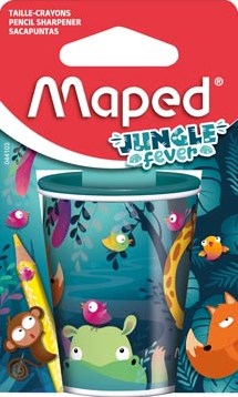 Deze puntenslijper is perfect voor het snel slijpen van potloden. Met twee gaten kun je verschillende diktes slijpen. Het opvangbakje zorgt ervoor dat je geen rommel maakt. Dit maakt het een handige keuze voor op school of op kantoor. Het vrolijke Jungle Fever design geeft een leuke uitstraling aan je bureau.