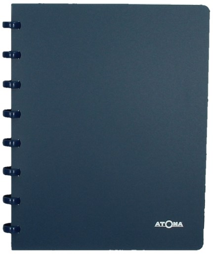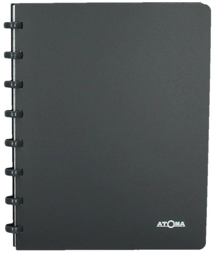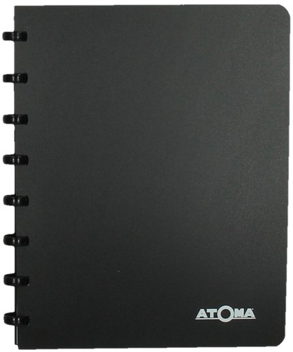 Adresboek met de gekende Atoma plastic ringen en een zwarte plastic kaft. Dankzij de plastic ringen kan de inhoud van een Atoma adresboek heel eenvoudig verstoken worden. Het adresboek heeft 54 vellen en is voorzien van 26 kartonnen tabs. De kleuren worden in willekeur uitgeleverd. Zwart, blauw, wit en grijs.