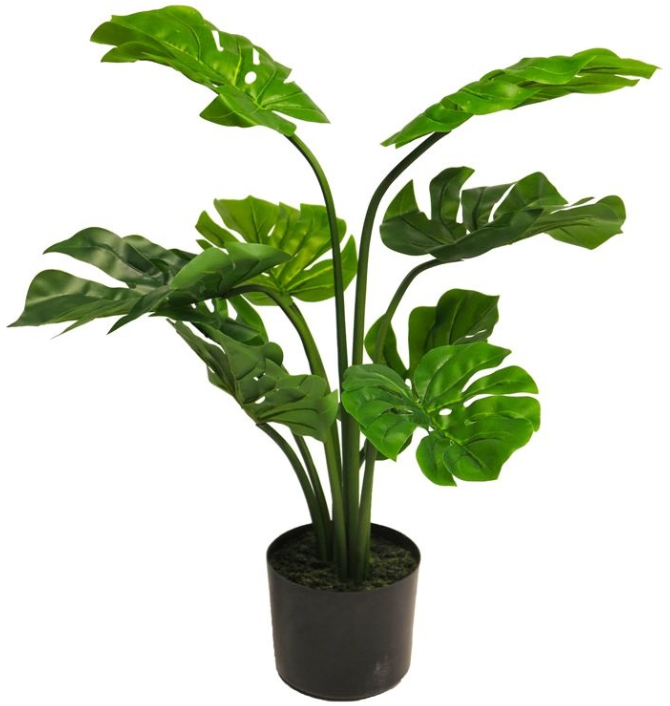 De Monstera Deliciosa is een echte klassieker onder de kamerplanten – en deze kunstvariant van 68 cm hoog brengt dezelfde tropische charme, maar zonder het onderhoud. De karakteristieke gespleten bladeren geven een speels en levendig effect, terwijl de volle groene kleur rust en frisheid uitstraalt. Ideaal voor wie stijl en gemak wil combineren.