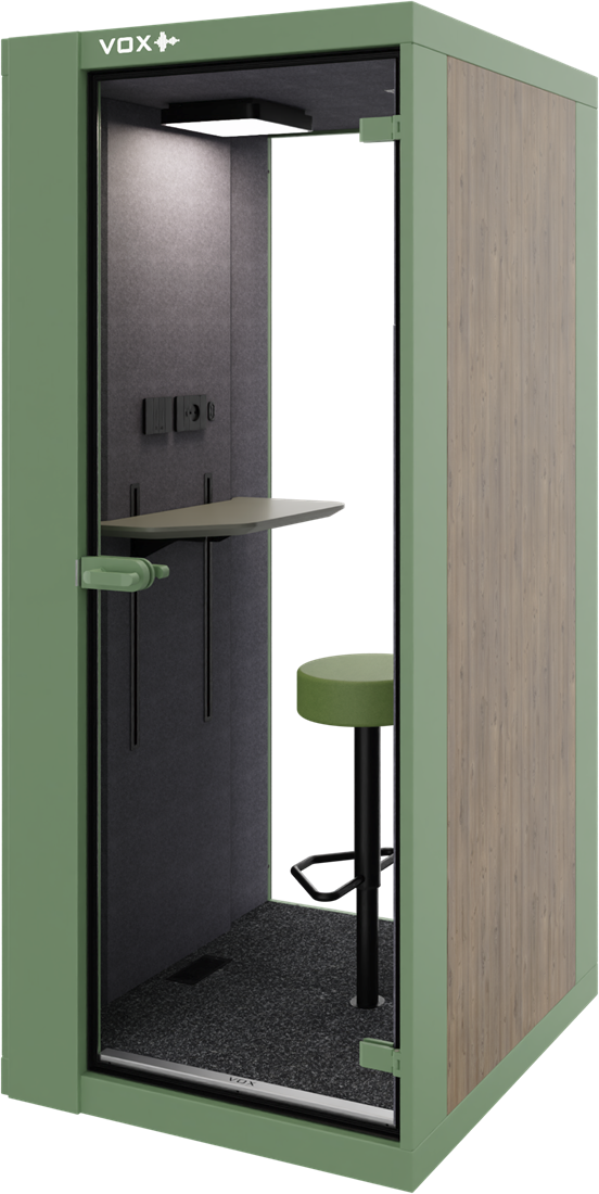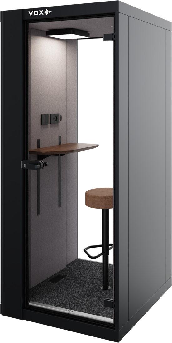 VOX's Small belcel is een perfecte oplossing voor het reduceren van geluid op kantoor. Deze compacte stilteruimte biedt een oplossing voor stilte en privacy. Ideaal voor het houden van een teams-meeting of het afsluiten voor een belgesprek. Ondanks zijn bescheiden formaat is de ruimte uitgerust met hoogwaardige geluidsisolatie en mogelijk uit te bereiden met een zitplaats, zodat gebruikers volledig kunnen afsluiten van de drukte van de buitenwereld. De Small belcel van VOX is de ideale keuze voor kantoren, openbare ruimtes of andere omgevingen waar veel gebeld wordt.