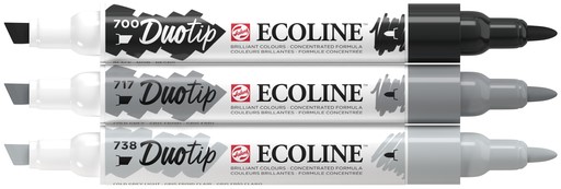 Stel een vraag over Duotip Talens Ecoline set à 3 stuks zwart en grijs