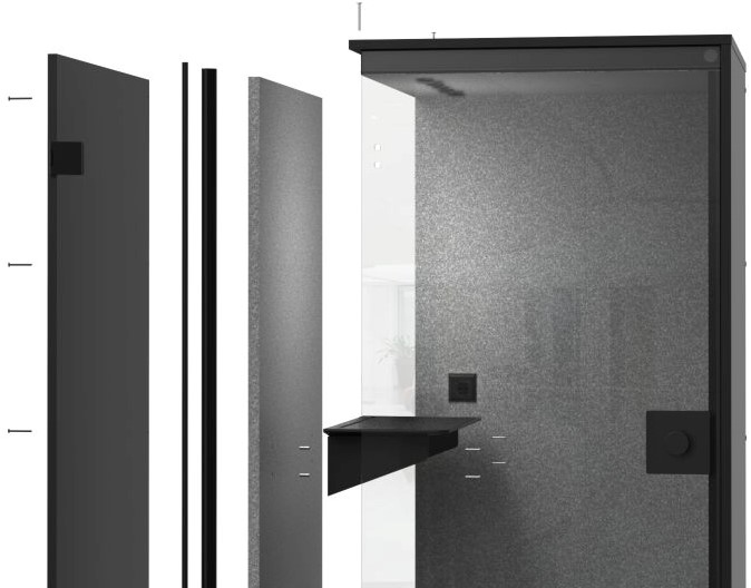 • Gebruik van hoogwaardig materiaal zoals de 8 mm glazen deur, 25mm melamine wanden en 40mm akoestisch PET vilt.