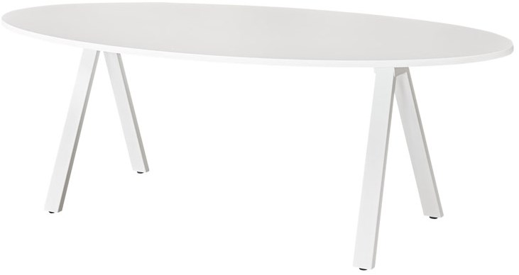 Deze vergadertafel geeft jouw vergaderruimte nét die extra moderne touch. Het A poot frame geeft de vergadertafel een ruimtelijk en modern uiterlijk Het tafelblad met een ovale vorm biedt plaats aan 8 personen en kan ook prima als bureau of kantinetafel gebruikt worden. Doordat je keuze hebt uit verschillende kleuren voor het tafelblad, kun je de stijl geheel aanpassen aan jouw kantoorinrichting.