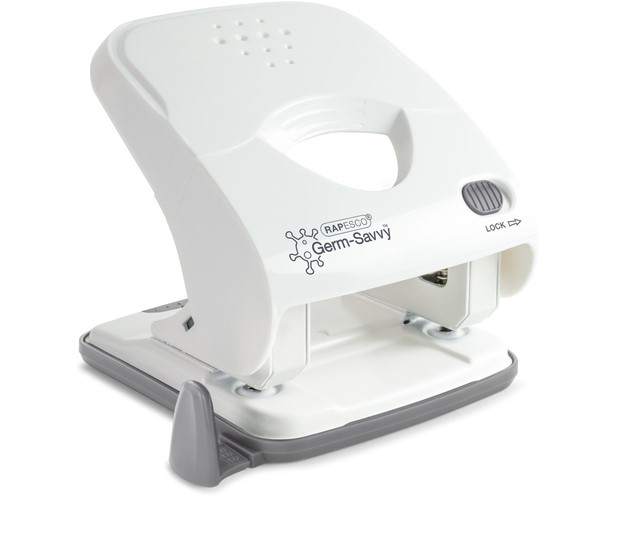 Accessoires Perforator Rapesco Germ-Savvy Less Effort Eco X5-40ps antibacterieel 2-gaats wit