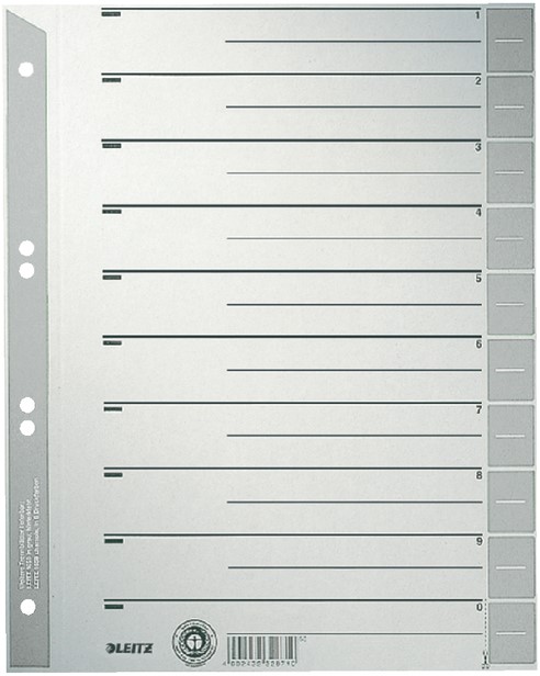 Scheidingsbladen Leitz A4 karton 200gr 6-gaats grijs 100 stuks