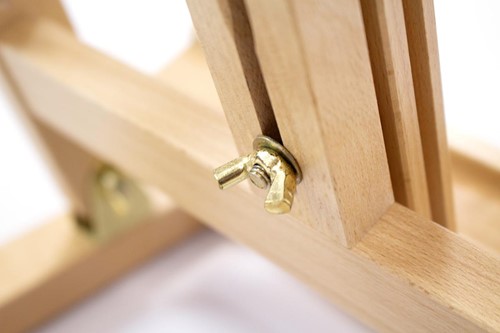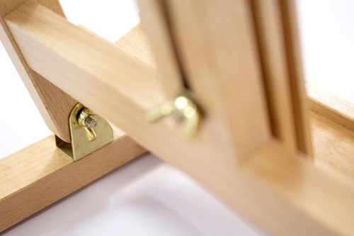 Uit vurenhout Afgewerkt met lak op waterbasis ter bescherming Bovenzijde verstelbaar voor canvas tot 67 cm Onderzijde voorzien van opzetrand Traploos in hoogte en hoek verstelbaar Verstelbaar tot max.113 cm Ft 34 x 37 x 80 cm