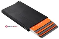 Beschermt uw kaarten tegen beschadiging en ongewenst scannen Ingebouwde RFID-bescherming Uit geborsteld aluminium Voor 6 kaarten Intuïtief push-mechanisme Kleur: zwart, grijs of brons (kleurkeuze niet mogelijk) Per 8 in handige toonbankdisplay (4 x zwart, 2 x grijs en 2 x brons)