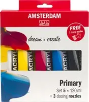 Artikelomschrijving Amsterdam acrylverf primair 120 ml, 5 tubes + 3 tuiten