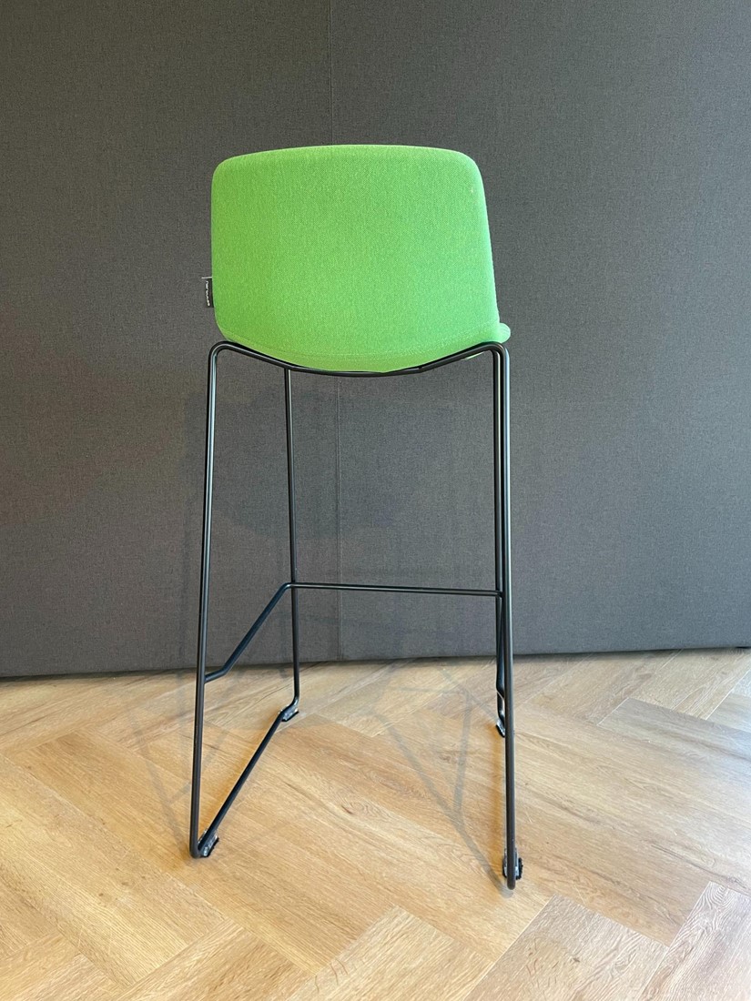 Deze hoge stoel met stalen frame en gestoffeerde zitting is een mooi en praktische stoel. Door het slede frame is hij stapelbaar is dus ideaal voor een kantine of vergaderruimte met hoge tafel. De gestoffeerde kuip is ergonomisch gevormd en bied veel comfort. Het stalen frame van deze hoge stoel is in vijf verschillende kleuren leverbaar. Tot slot is de zitting in verschillende kleuren leverbaar en is er zelfs de keuze om de zitting twee verschillende kleuren te geven voor een unieke en speelse uitstraling.