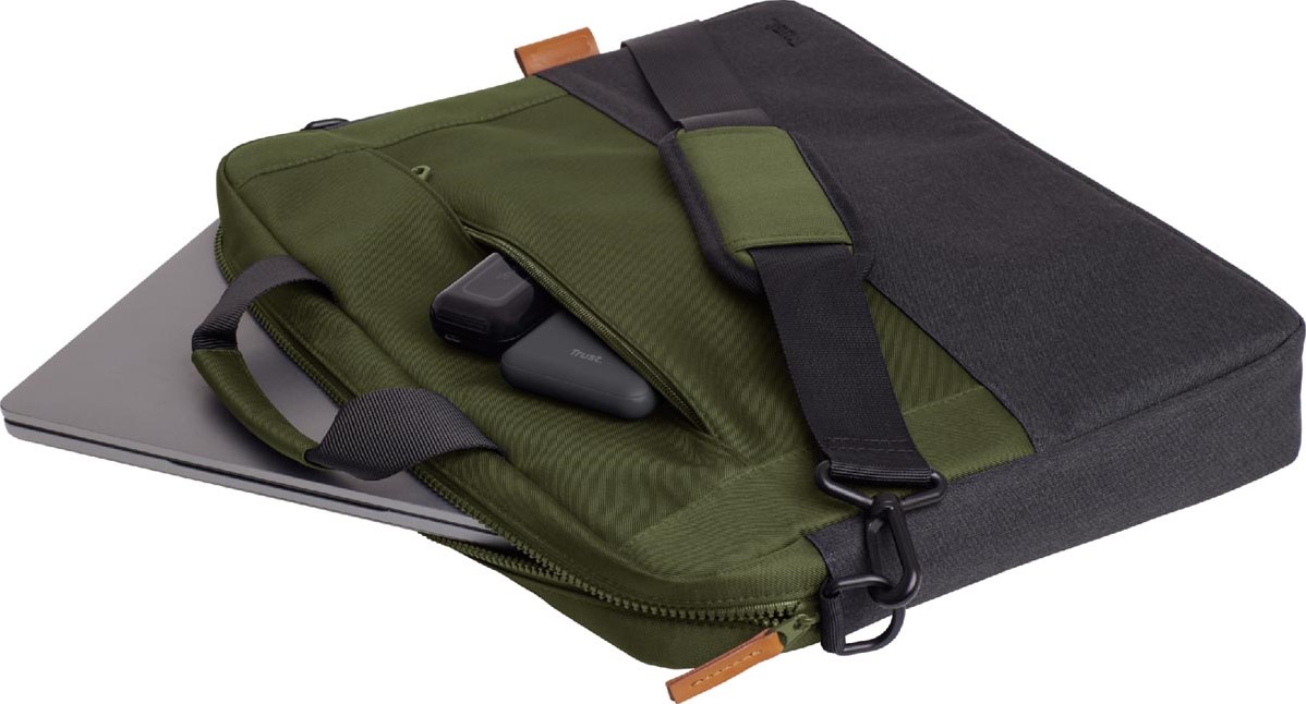 Stel een vraag over Trust laptoptas Lisboa voor 16 inch laptops, groen