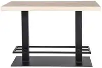 Het zwarte gepoedercoate frame heeft twee middenpoten die op een zwarte plaat staan. Dit geeft de tafel grote stabiliteit en een bijzonder design. De vergadertafel biedt plaats aan 6 personen en kan ook prima als bartafel of kantinetafel gebruikt worden.