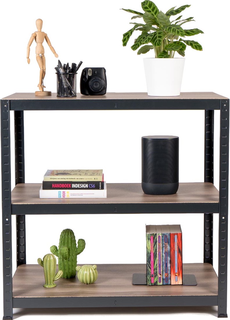 Ft 88 x 90 x 45 cm, 3 legborden, donkere eik look melamine
