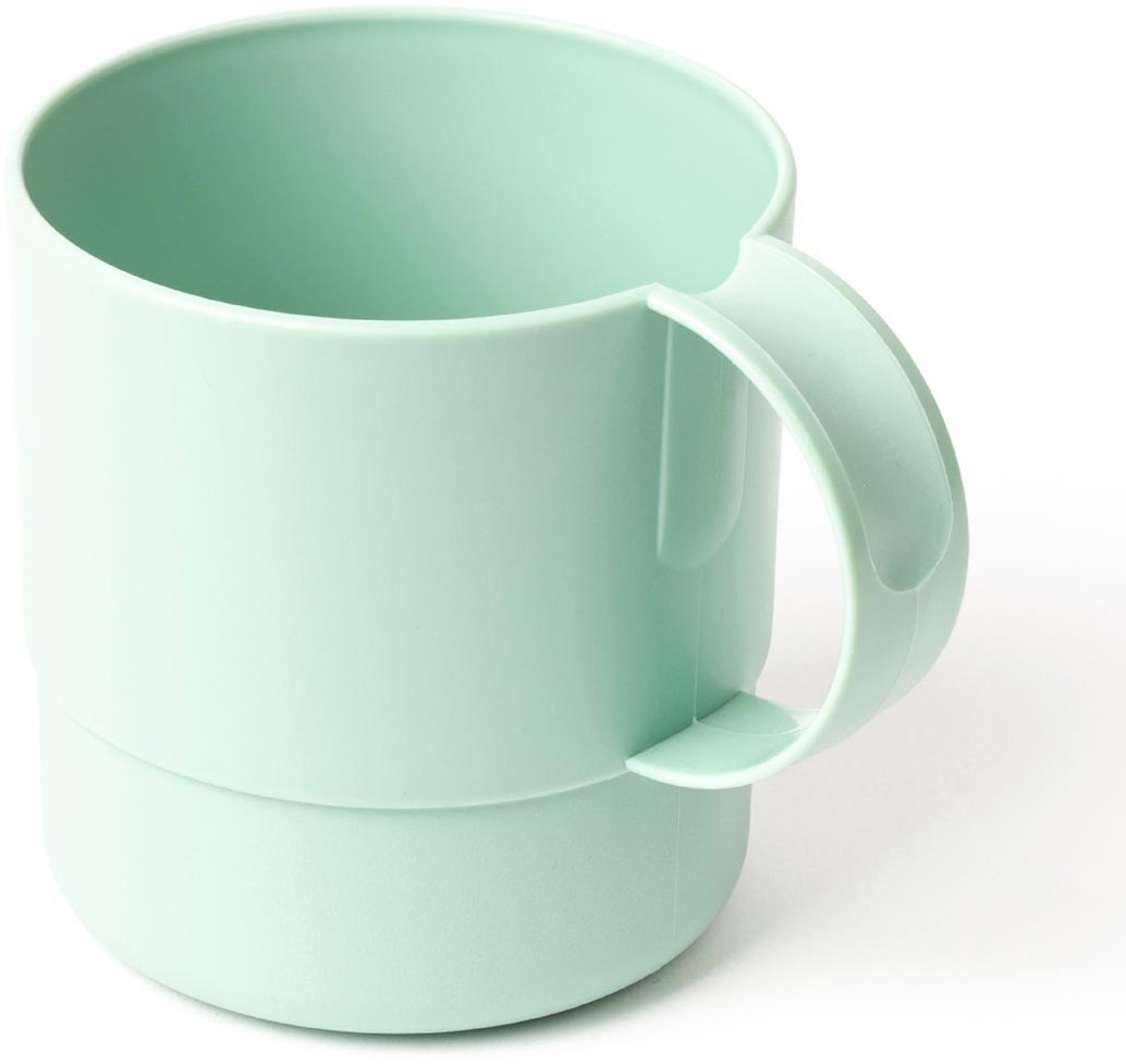 Uit kunststof (70 % suikerriet) Belgisch fabricaat Vaatwasbestendig Met oor Inhoud: 325 ml Ft 8 x 8 x 10,8 cm (l x b x h) Kleur: pastelgroen Recycleerbaar: 70 %