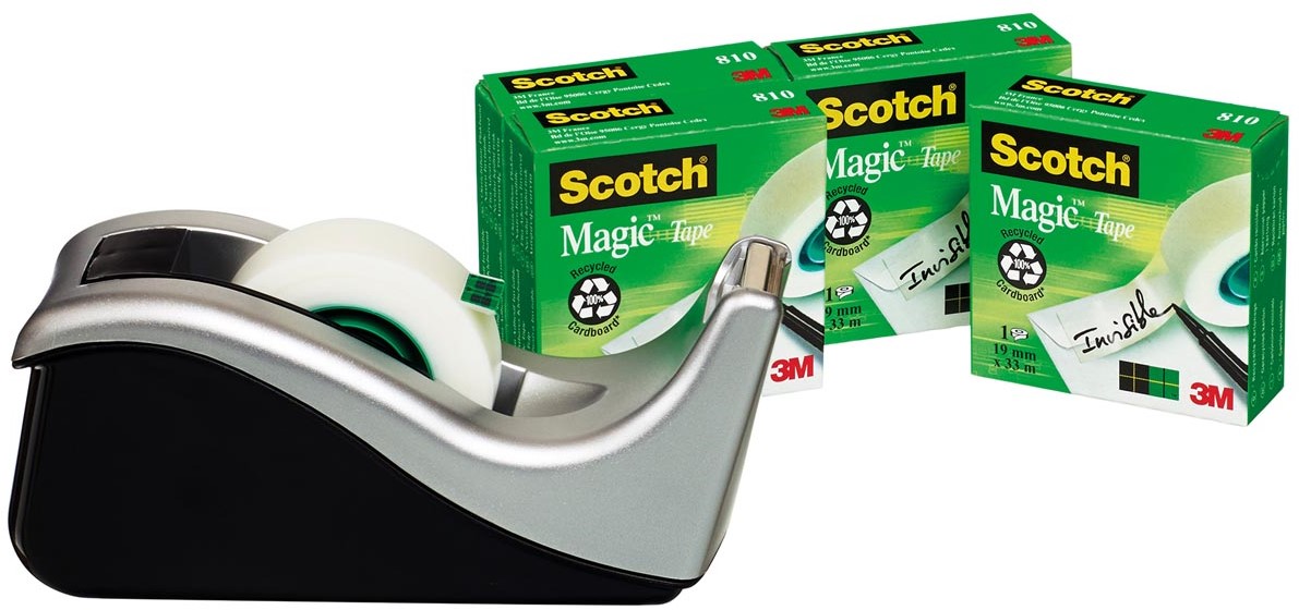 Stel een vraag over Scotch plakbandafroller C60 zilver + 4 rollen Magic Tape