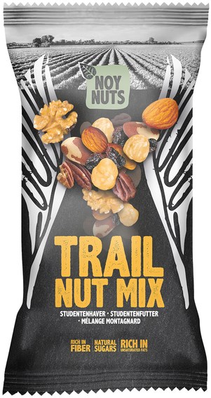 Trail Nut Mix van onbewerkte noten met onder andere amandelen, walnoten, hazelnoten, paranoten, pecannoten en zwarte rozijnen. Amandelen zijn rijk aan plantaardige eiwitten, vezels, calcium en ijzer. Verder bevatten ze een relatief hoog gehalte aan vitamine E en magnesium. Walnoten zitten boordevol goede voedingsstoffen zoals omega-3 vetten, magnesium, ijzer, koper, fosfor en eiwitten. Hazelnoten bevatten veel vitaminen uit het B-complex. Er zit B1, B2, B3, B5, B6 en B11 in. Verder zit er vitamine C, E en K in, en werkt het als antioxidant in je lichaam. Pecannoten bevatten net als walnoten de grootste hoeveelheid antioxidanten en cholesterolverlagende bestanddelen. Daarnaast zitten in deze noten meer dan 19 vitamines en mineralen, zoals vitamine E en A, foliumzuur, calcium, magnesium, koper, fosfor, kalium, mangaan en zink. Ook paranoten zijn rijk aan koper, magnesium, mangaan, kalium, calcium, ijzer, fosfor en zink. Vooral fosfor is in hoge mate aanwezig in de noot. Met deze notenmix krijg je dus een cocktail aan supergezonde nutriënten binnen waardoor je dag niet meer stuk kan!