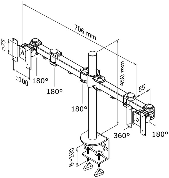 Monitorarm Quantore 2 schermen 17-27 inch zwart
