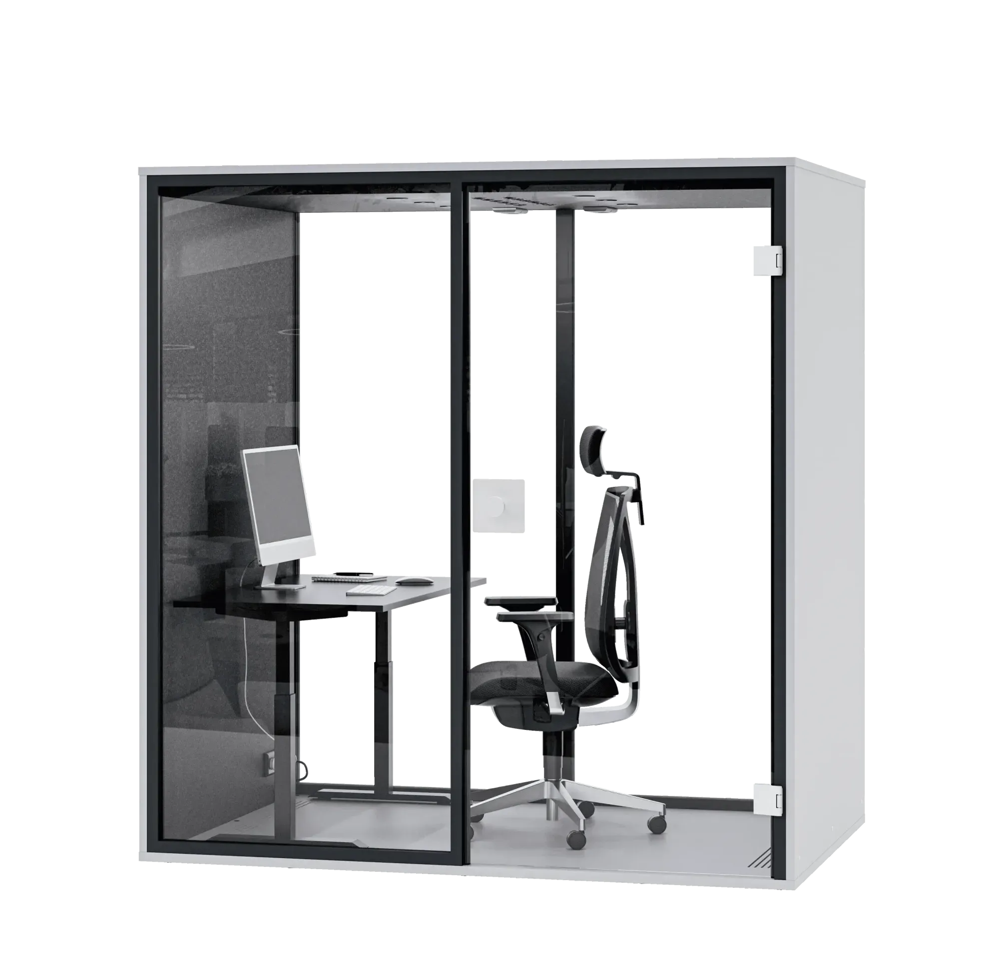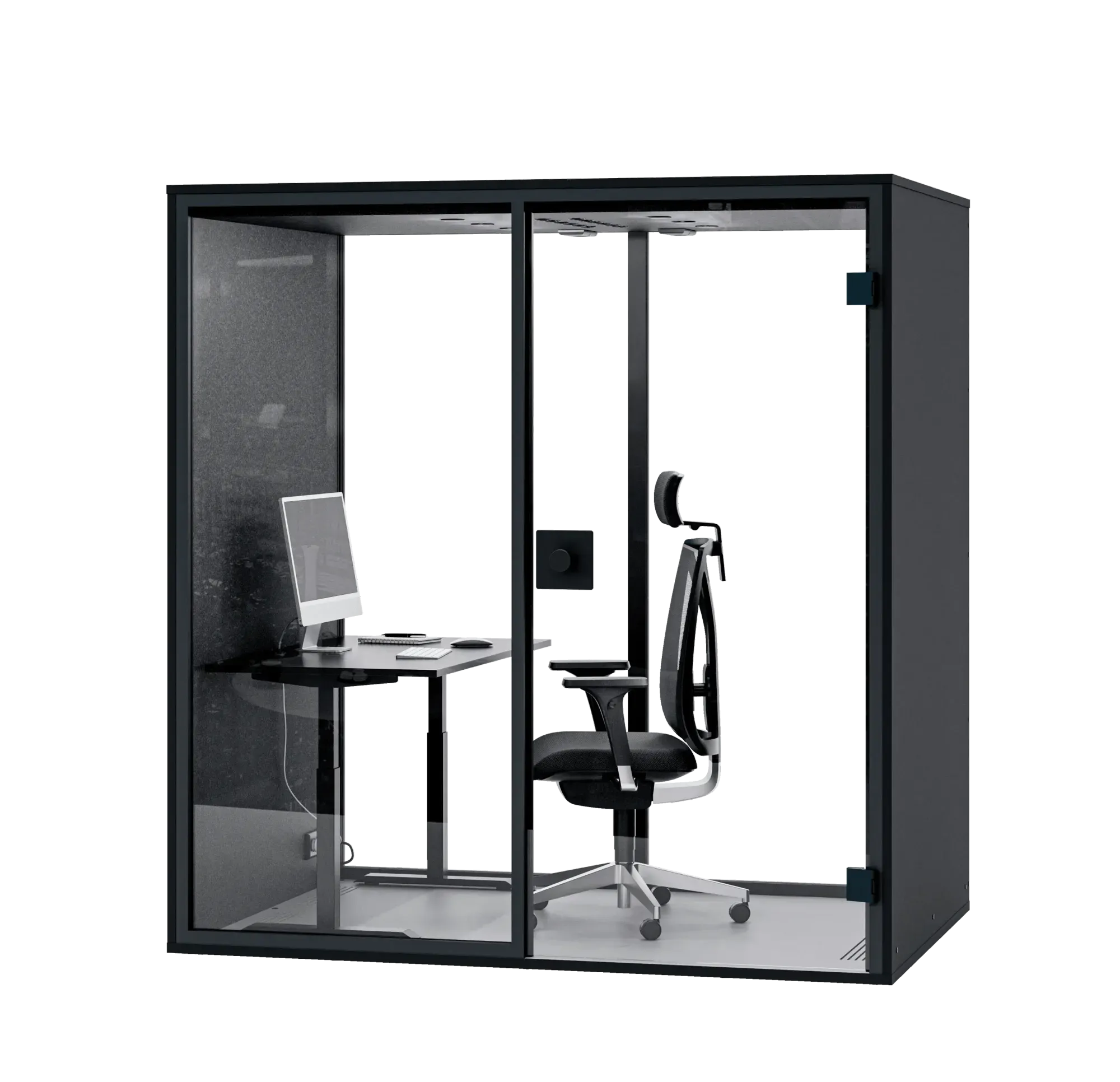 • Gebruik van hoogwaardig materiaal zoals de 8 mm glazen deur, 25mm melamine wanden en 40mm akoestisch PET vilt.