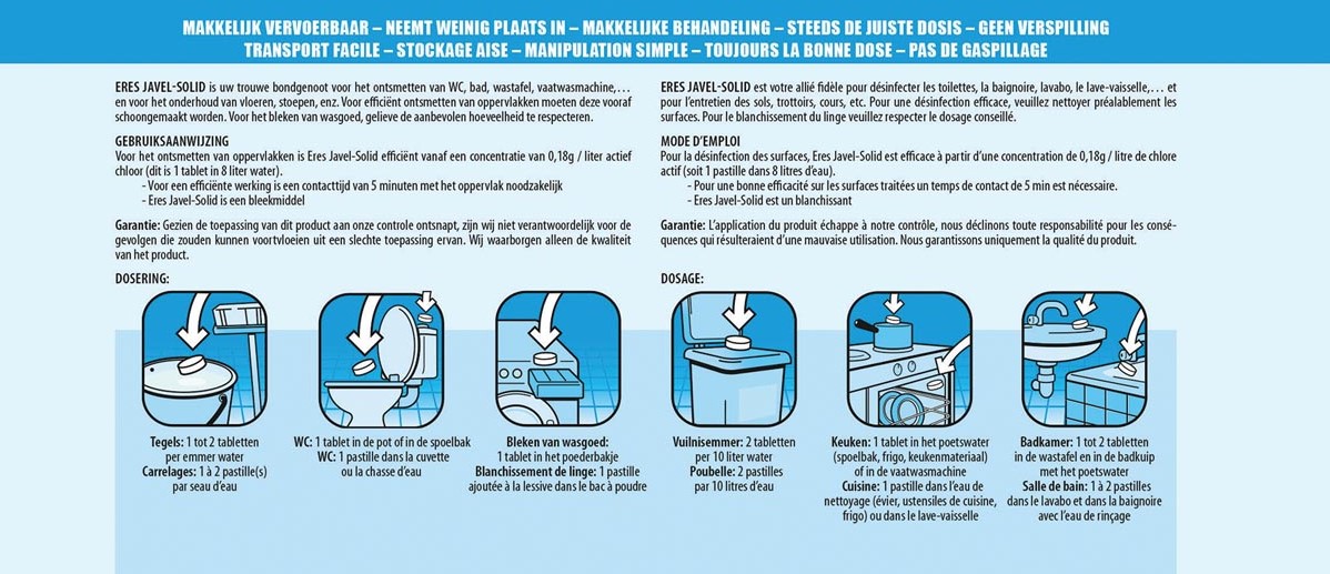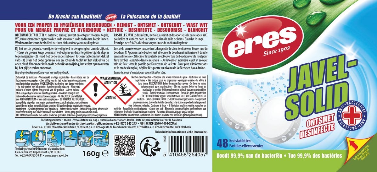 Artikelomschrijving Eres javel solid bruistablet, pot van 48 stuks