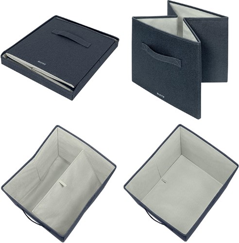 Specificaties Leitz stoffen opbergdoos, large, grijs, set van 2 stuks