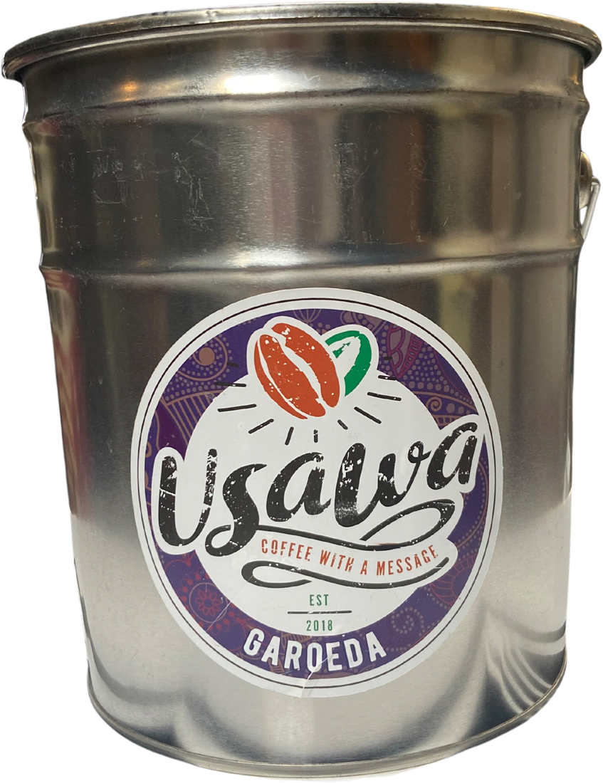 Stel een vraag over Usawa vers gebrande koffiebonen Garoeda blik 4 kilo