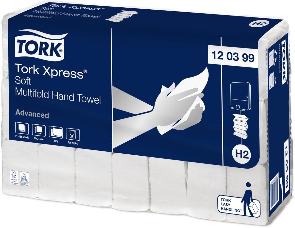 Stel een vraag over Tork Xpress Advanced handdoek 2-laags, systeem H2, wit, ft 34x21,2 cm, pak van 21 stuks