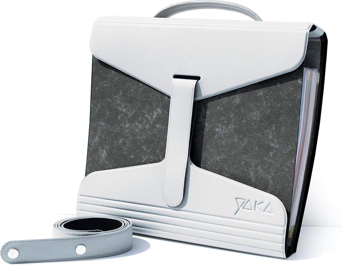 Past op alle ordners en documenthouders (A4-formaat van 40 tot 80 mm) Bestaat uit een hoofddeel Heeft een riem van 120 cm die in drie lengtes kan worden aangepast: 96 cm, 104 cm of 112 cm Gemakkelijk te dragen met het handvat of de schouderriem Gemaaktvan biocompatibel PVC
