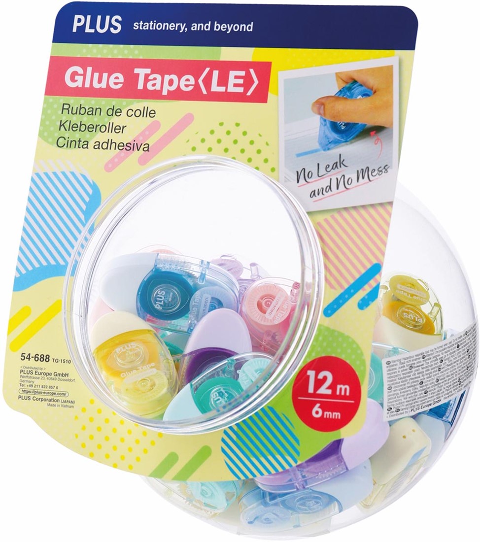 Stel een vraag over Plus lijmroller, 12 m x 6 mm, display van 30 stuks in geassorteerde kleuren