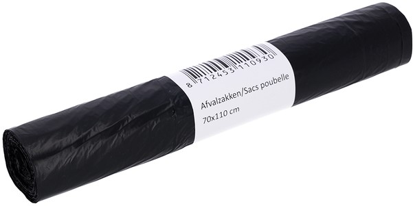 Stel een vraag over Afvalzak Cleaninq 70x110cm HDPE T25 120L zwart rol à 20 stuks