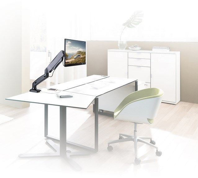 Creëer een ergonomische en ruimtebesparende werkplek door gebruik te maken van de volledig metalen AC8311 Monitorsteun met gasveer. Plaats het beeldscherm met één hand op de ideale hoogte en kijkhoek dankzij het handige gasveersysteem. Ideaal voor flexibele werkplekken. De AC8311 Monitorsteun is geschikt voor één scherm tot en met 32 inch en 9kg en is gemakkelijk te monteren aan een bureau met een klem- of bureaudoorvoersysteem. Wanneer je op een kantoor werkt met flexibele werkplekken is het handig om de AC8311 Bureausteun met gasveer te gebruiken. De AC8311 is eenvoudig zonder gereedschap in hoogte en diepte te verstellen. Kantel, zwenk en roteer het scherm voor het creëren van een ideale ergonomische werkhouding waardoor je de kans op rug-, nek- en schouderklachten verkleint. Kabels zijn netjes weg te werken dankzij het handige kabelmanagementsysteem. Verder heeft de bureausteun geïntegreerde verlengkabels voor USB 3.2 Gen1, microfoon en speaker. Met handig beeldschermmontagesysteem ,pas de monitor naar wens aan door het instellen van de ideale kijkafstand.