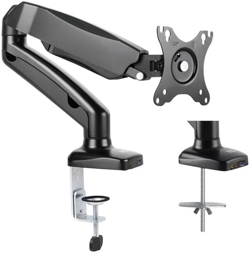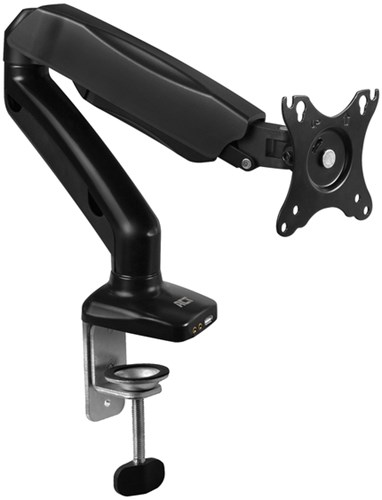 Bureausteun met gasveer voor één monitor tot en met 32 inch en 9kg met VESA 75x75 en 100x100.