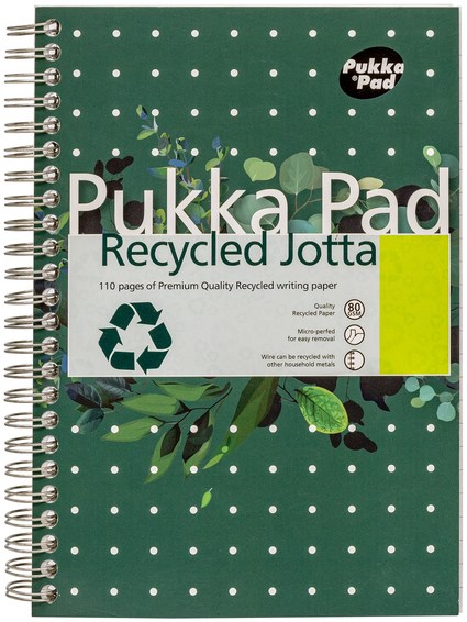 De gerecyclede Pukka Pads-lijn weerspiegelt Pukka's toewijding aan het creëren van ethische producten van hoge kwaliteit. We zijn er trots op dat we een assortiment gerecyclede notitieblokken van topkwaliteit kunnen aanbieden, zodat u duurzaam en stijlvol kunt zijn. De mogelijkheden voor onze notitieblokken zijn eindeloos, of het nu voor terug naar school, de universiteit of gewoon een ruimte voor uw ideeën is. Onze A5-notitieblokken zijn de perfecte aanvulling op je schrijfwarencollectie... Waarom kies je niet voor een milieuvriendelijk alternatief voor je gebruikelijke notitieblok?