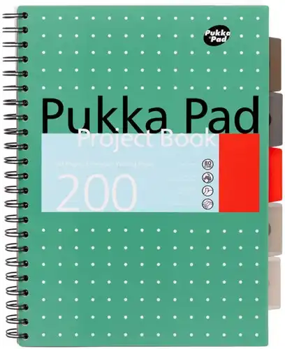 De Pukka Pad Metallic serie is een essentiële collectie voor studenten, werkende professionals en bedrijven. Maak kennis met ons A4 projectboek, onderdeel van onze Metallic serie notitieboeken, in-house ontworpen en wereldwijd geliefd met onze kenmerkende geraffineerde metallic omslag. Onze projectboeken zijn de perfecte plek om al je notities en projecten op één plek te organiseren. Elk notitieboek heeft 5 gekleurde verdelers die je kunt verplaatsen, zodat je je projectboek gemakkelijk kunt organiseren. Elke divider heeft een opbergvak om documenten in op te bergen. Het projectboek heeft een A4-formaat, waardoor het uitstekend geschikt is voor gebruik op school, de universiteit of op het werk, want het past perfect in elke rugzak of handtas. Elk individueel projectboek heeft 200 pagina's van hoogwaardig 80gr papier dat geperforeerd is om het gemakkelijk te kunnen verwijderen.