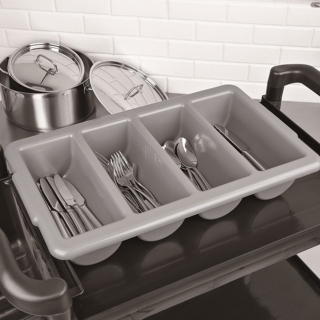 Stel een vraag over Bestekbak Olympia Kristallon 4 vakken GN 1/1 grijs
