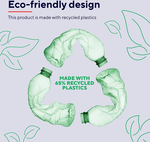 Uit 65 % gerecycleerd kunststof Met noise-cancelling microfoon Aanpasbare hoofdband en zachte on-ear oorkussens Eenvoudig bereikbare volumeregeling geïntegreerd in het oorkussen Microfoon dempt als je hem omhoogklapt Lengte kabel: 1,8 m (USB-A, USB-Cadapterkabel meegeleverd) Kleur: zwart