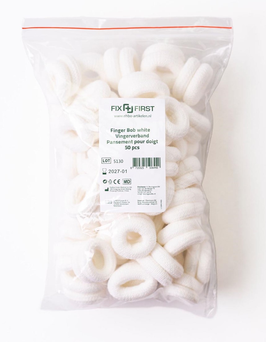 Artikelomschrijving Fixfirst vingerbobs, textiel, wit, pak van 50 stuks